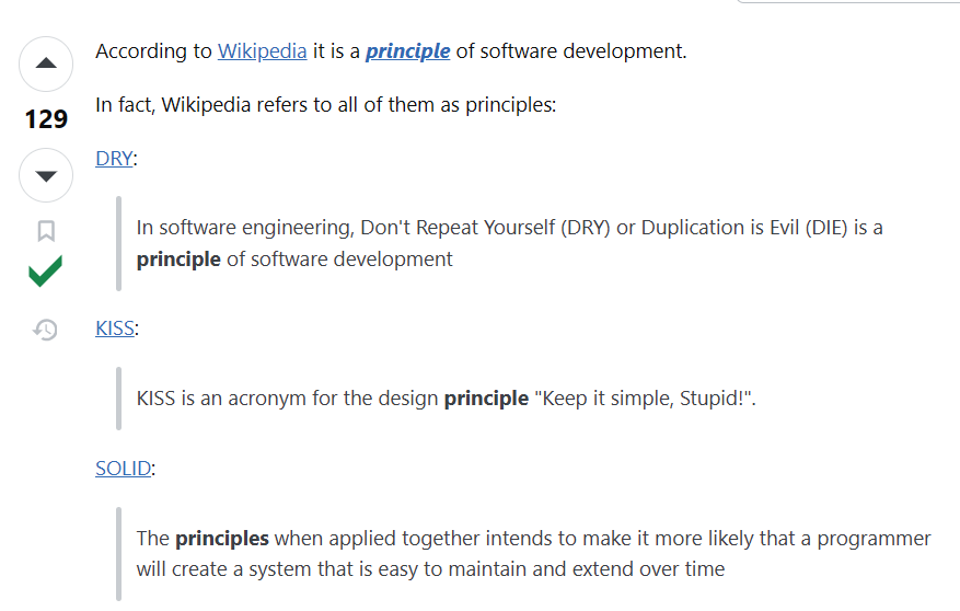 KISS (Keep It Simple, Stupid) means should be simple and straightforward. Avoid unnecessary complexity in your code.